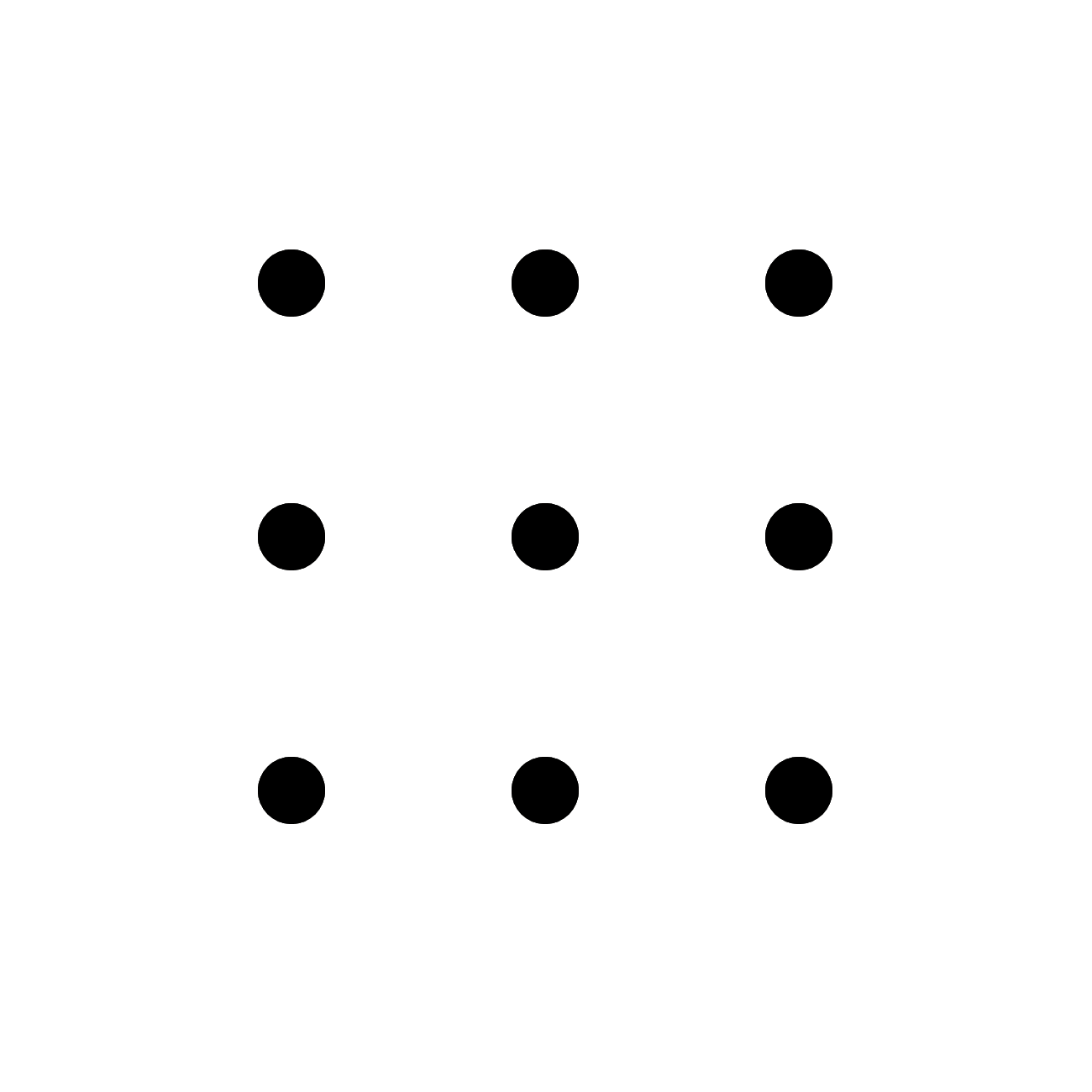 The 9 dots puzzle is a game about connecting nine points arranged in a three by three pattern using only four straight lines, without taking the pen off the paper. It is a game about thinking outside the box,